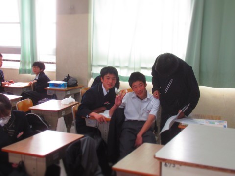 生徒会恒例のあいうえお作文と、修了式後の1年生の学活の様子です。