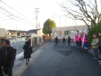 教育実習生さんは、雨の日も登校指導を続けてくれています。