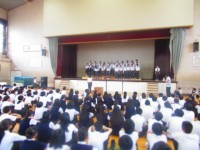 合唱練習2日めは、2年生が体育館でリハーサルを行いました。
