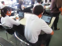 流暢な英語で、遠く離れたフィリピンのスタッフと英会話をしています。