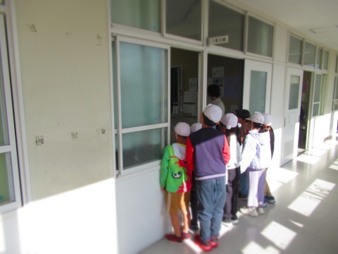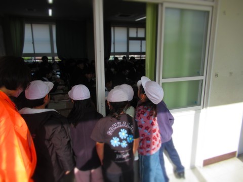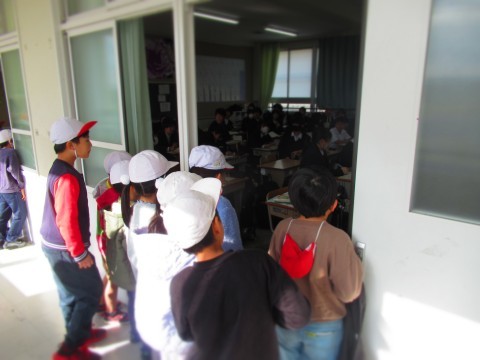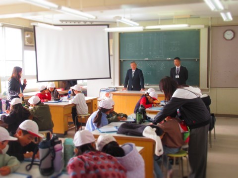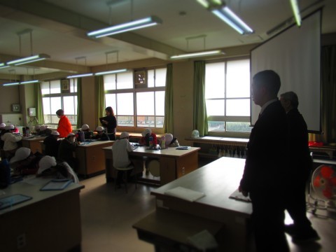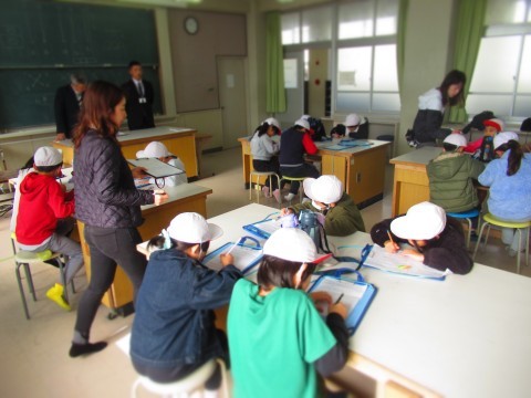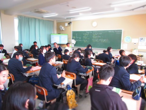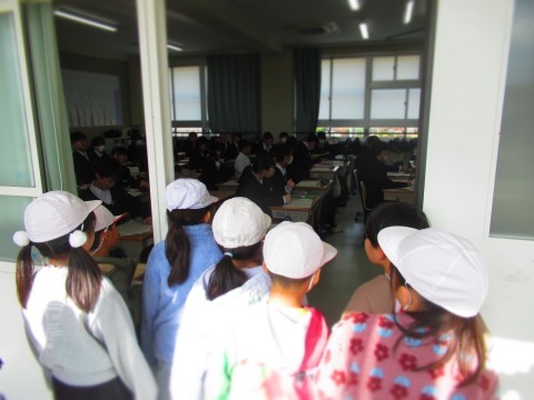 金岡小学校2年生の児童さんは、中学3年生体育の授業と、1年生各教科の授業を見学しました。