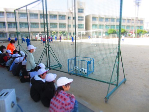目の前で繰り広げられる迫力満点のサッカーを見て、驚きの声をあげていました。