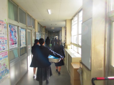 喫食を終えたクラスは食缶を返しに配膳室へ。