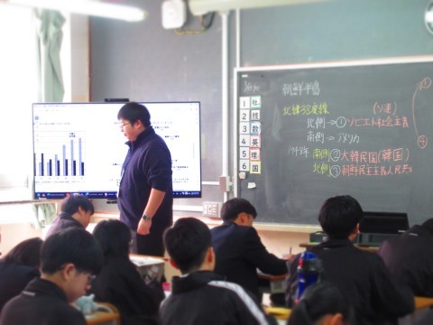 写真は、2年生社会科・数学科のそれぞれ授業です。