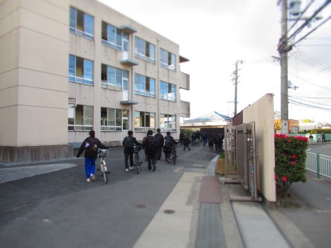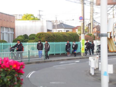クラブデーということもあり、この時間帯は自転車を押して登校する生徒が多かった印象です。
