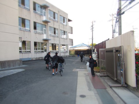 今日はクラブDAYということで、放課後に校外で練習をする部活動生徒は自転車を押して登校しています。