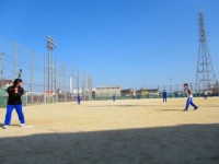 職員室前を通る3年生と3年生学年主任と3年生職員。