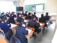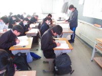 試験開始前の予鈴が鳴り、問題用紙・解答用紙が配られています。