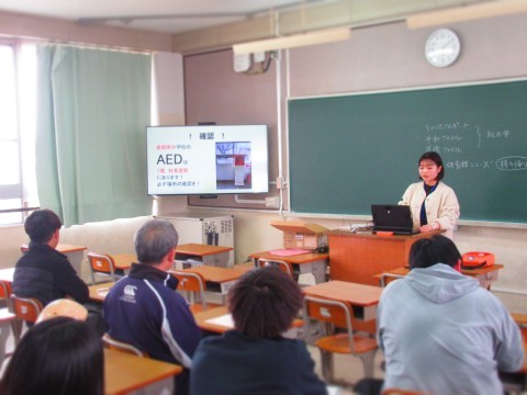 食物アレルギーについて理解を深め、緊急時に迅速に救命処置ができるような体制づくりをするために、教職員向けの研修を行いました。