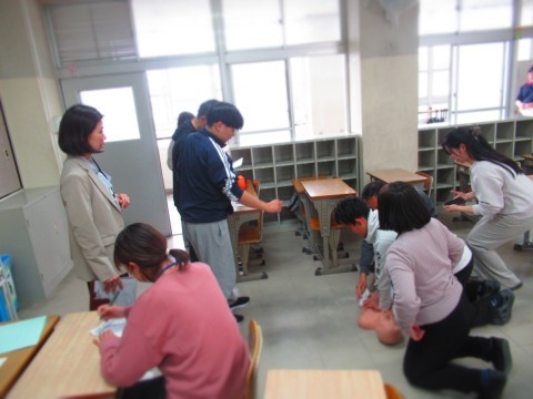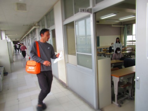 基本的な心肺蘇生法やAEDの取り扱いについても再度研修し、緊急事態が起きたことを想定してシミュレーション形式で行いました。