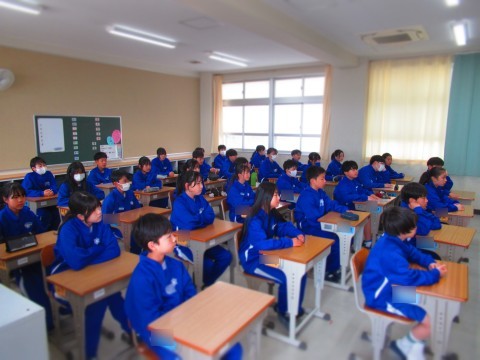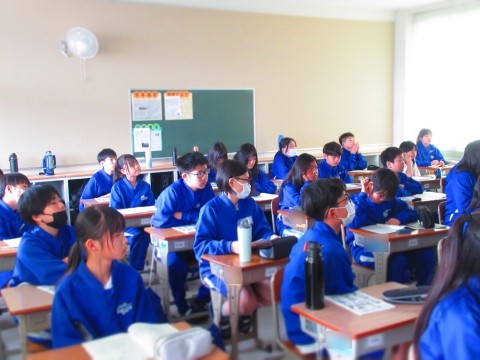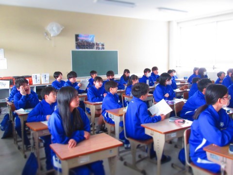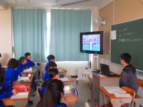 1年生は、部活動紹介の動画を見ながら、何部に入部するか頭を悩ませていました。