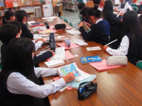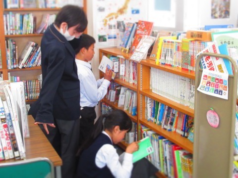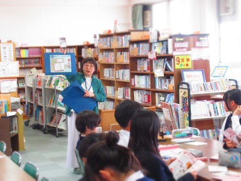 1年1組は、国語の授業内で図書館の利用の仕方の説明を受けていました。