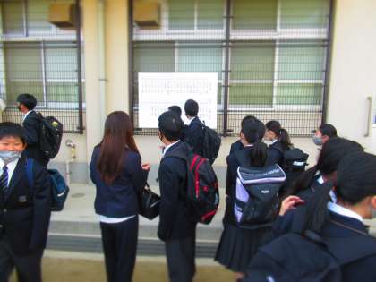 入学式開式までに,D棟校舎前に新クラスを貼り出しました。