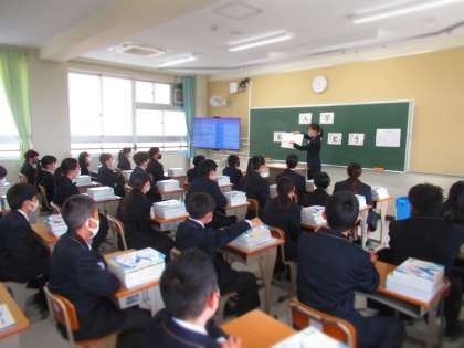 新入生はグラウンドに集合した後,教室にて入学式の説明を聞きました。