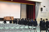 式が終わり,新入生が退場します。