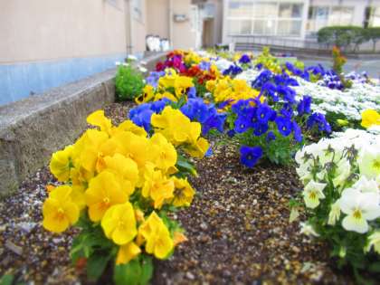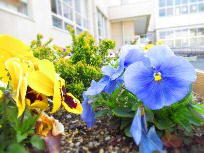 PTA緑化活動によって植え替えられた花が,きれいに咲いています。