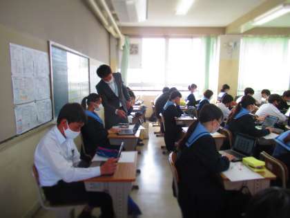 3年生社会科では,第1回の授業よりGIGA端末を用いて授業に取り組んでいます。