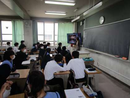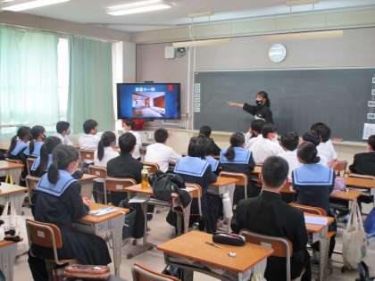 宿泊学習にむけてのパワーポイントを見ています。どのクラスも期待がふくらみ,盛り上がっていました。