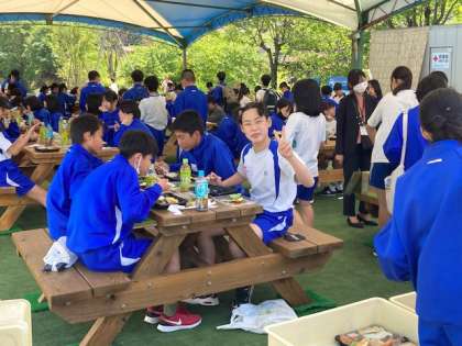 思いの外、午前中のラフティングで体力を消耗したようで、ばくばくと食べていました。