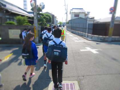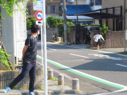 ダイキン工場裏手にある交差点でも見守り活動を実施。