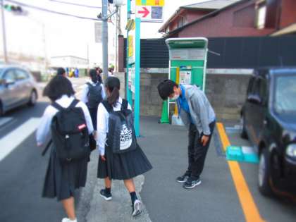 あいさつ強化DAYは,学校外でも。 こういった心のこもったあいさつができる学校,それが金岡南中学校です!