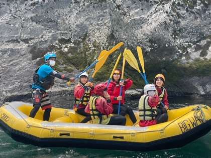 乗る前は、「大丈夫かなぁ」、「落ちたらどうしようかなぁ」と、不安を口にする生徒も。