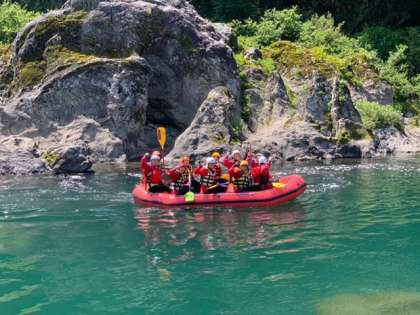 ラフティングのようすを紹介。