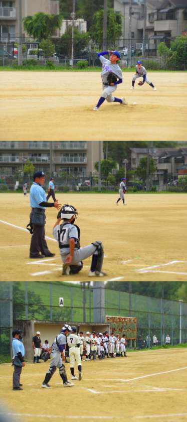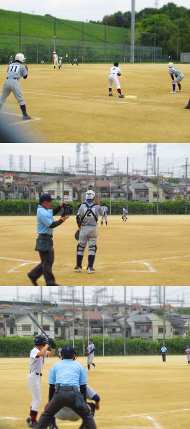 野球部,堺市種目別大会準決勝のゲーム中と,試合後の表彰式のようすです。
