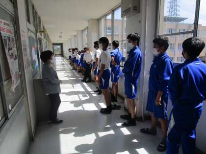 3年生内科検診 公開日 2022/05/27 更新日 2022/05/27 3年生 5〜8組は内科検診がありました。「自分は健康」と思っていても、医師に診ていただくということに何かドキドキしていました。自分自身には見えない部分がどうなっているのか、誰でも不安になりますね。受験生とはいえ、健康に生活が送れるように、基本的な生活習慣を整えて、寝不足にならないようにしましょう。