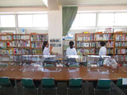 本校図書室には,様々なジャンルの本が理路整然と並べられており,手に取りやすい工夫がなされています。