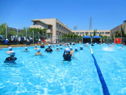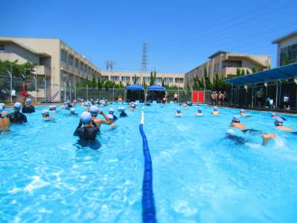 1年生ではまず,クロール25mを泳ぐことを目標に授業を進めていきます。