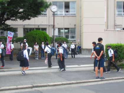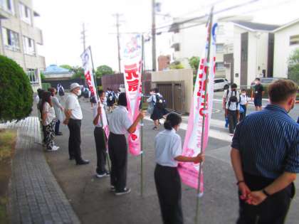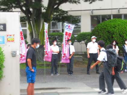 さわやかなあいさつで一日が始まる学校 公開日 2022/07/17 更新日 2022/07/07 お知らせ おはようございます。 3連休の真ん中の日曜日,いかがお過ごしでしょうか? 本校では月に一度,「あいさつ強化DAY」を設け,さわやかなあいさつができる学校づくりをめざしています。 写真は,7月6日の「あいさつ強化DAY」のようすです。