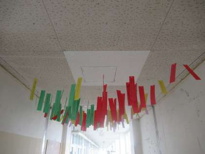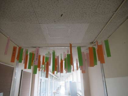 2年生の廊下には短冊を飾っています。