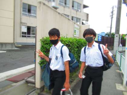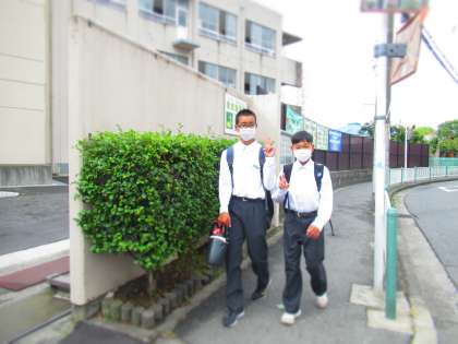 登校時にカメラを向け「はい,チーズ」と言うと,良い表情で応えてくれました。