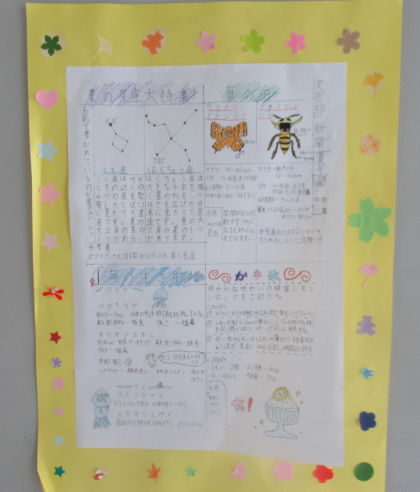文芸部が夏の星座,夏の虫などについて新聞を掲示してくれています。