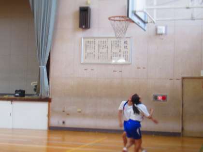 写真は,体育館でのバスケットボールの授業です。