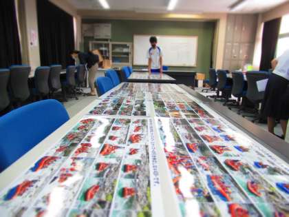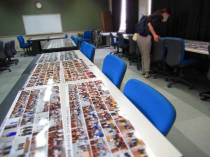 2年生は5月23日,24日に行った宿泊学習の写真を展示し,生徒と保護者さんが見て購入するものを選びました。