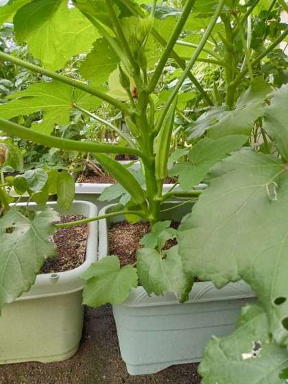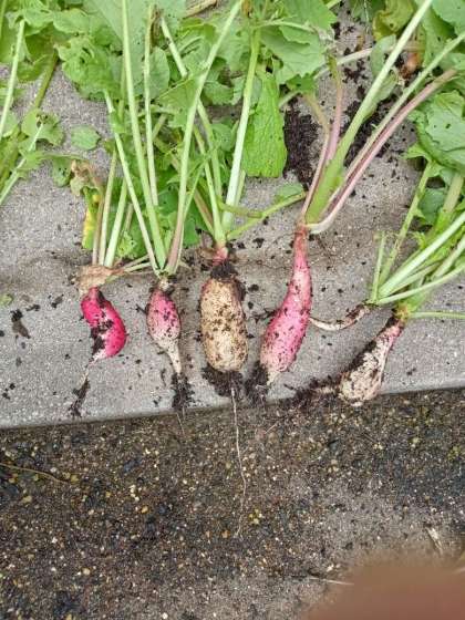 今日、オクラとハツカダイコンが収穫できました。