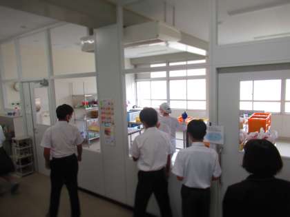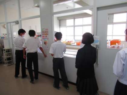 12時35分,4限終了のチャイムが鳴りやむとともに,給食を取りに来る生徒であふれかえる配膳室。