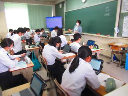 GIGAスクール構想の実現推進に向け 【公開授業】 公開日 2022/09/09 更新日 2022/09/09 お知らせ 全市にライブ配信となった3年2組数学科の授業です。 教育センターや教育委員会,本校職員,他校の先生方,本当に多くの先生方に見守られて行ったこの授業。 緊張していたのは生徒ではなく・・・・・