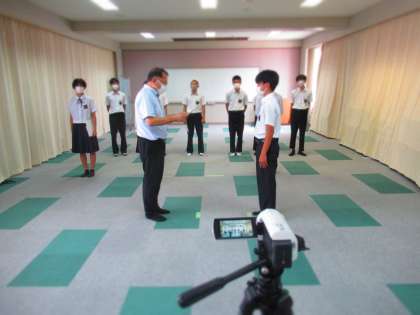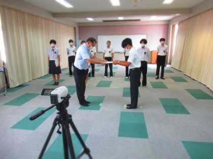 サッカー部の表彰伝達です。