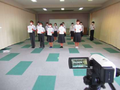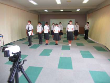 引き続き,水泳部の表彰伝達です。