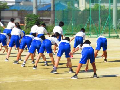 練習の前は,しっかりと準備運動を。