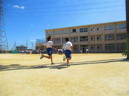 1年生グラウンドでは,体育の授業内で種目練習に励んでいます。