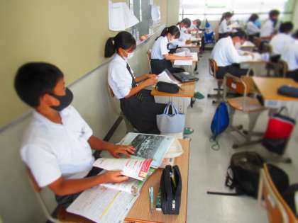 各教室では,普段通りの授業をしているところや自習勉強の時間をとっているところも。
