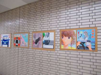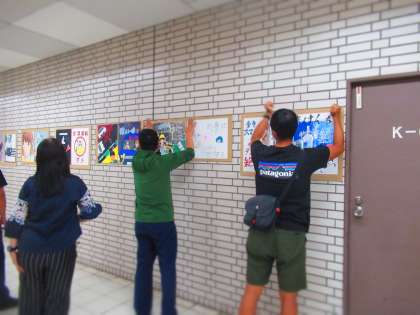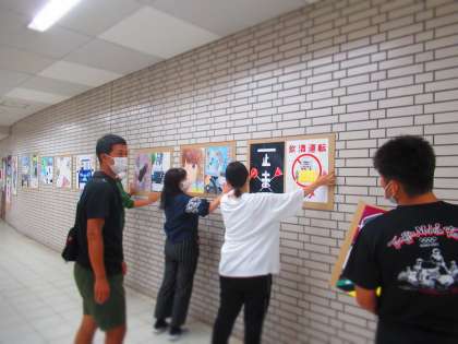 美術部の作品を展示する際,北堺警察署署員の方にもご協力いただきました。