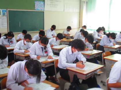 2年生は,テスト勉強の後,理科,国語の試験を受けました。