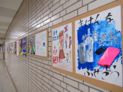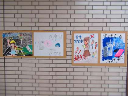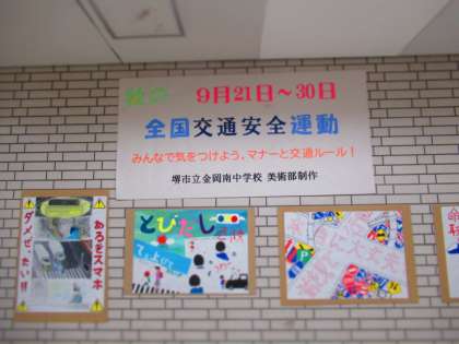 秋の全国交通安全運動実施にともない,本校美術部の作品が大阪メトロ御堂筋線新金岡駅の遊歩道に展示されています。
