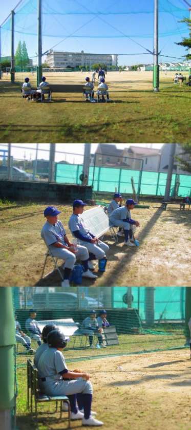 ベンチで相手野手の動きや,バッターの特徴や打球方向などを伝えるベンチにいるメンバー。