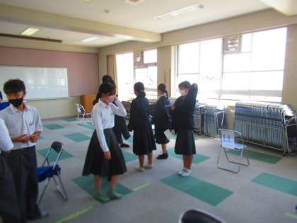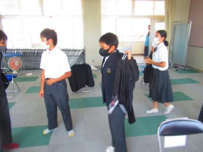 1年生,ウインドブレーカー試着会のようすです。